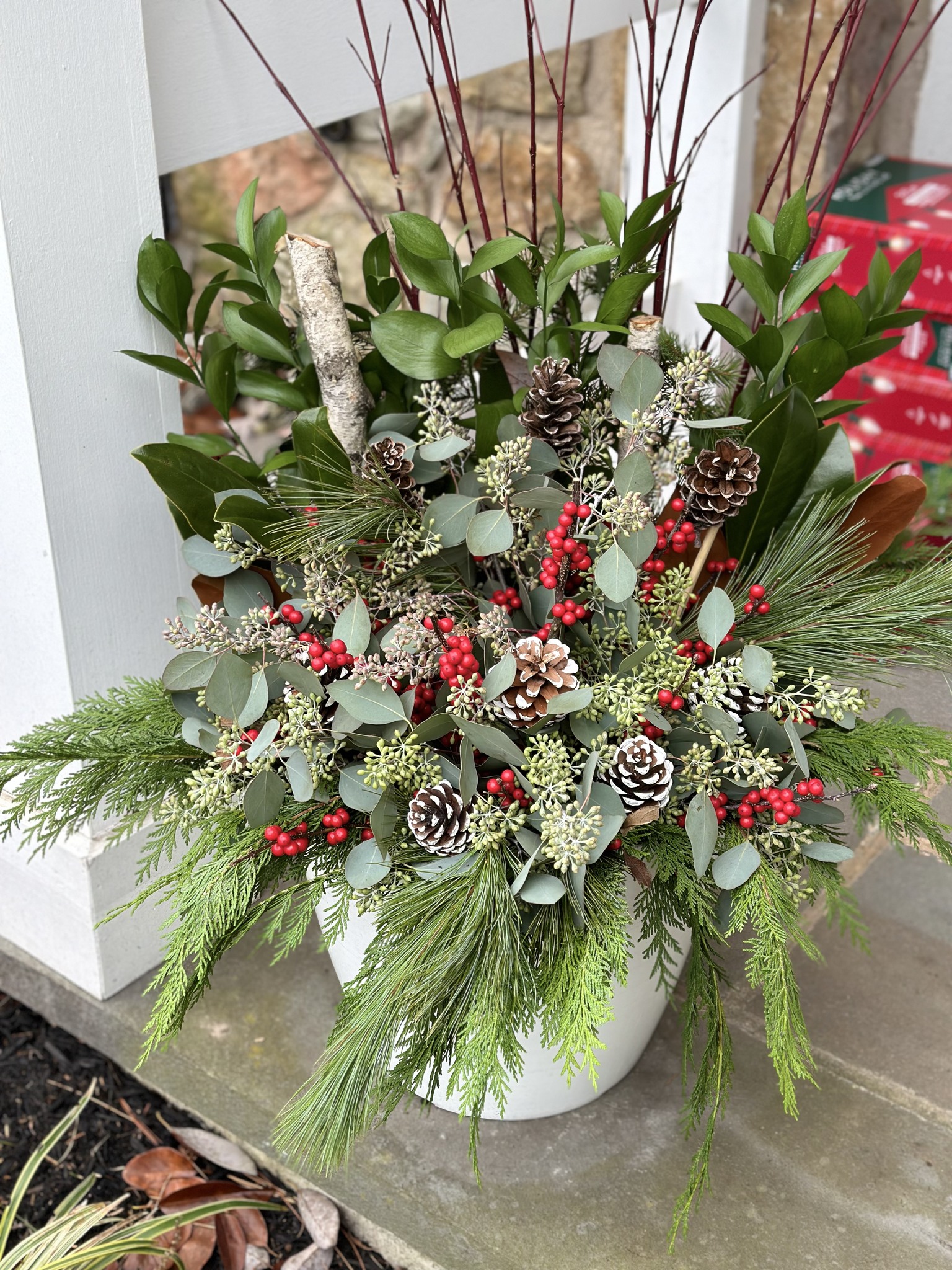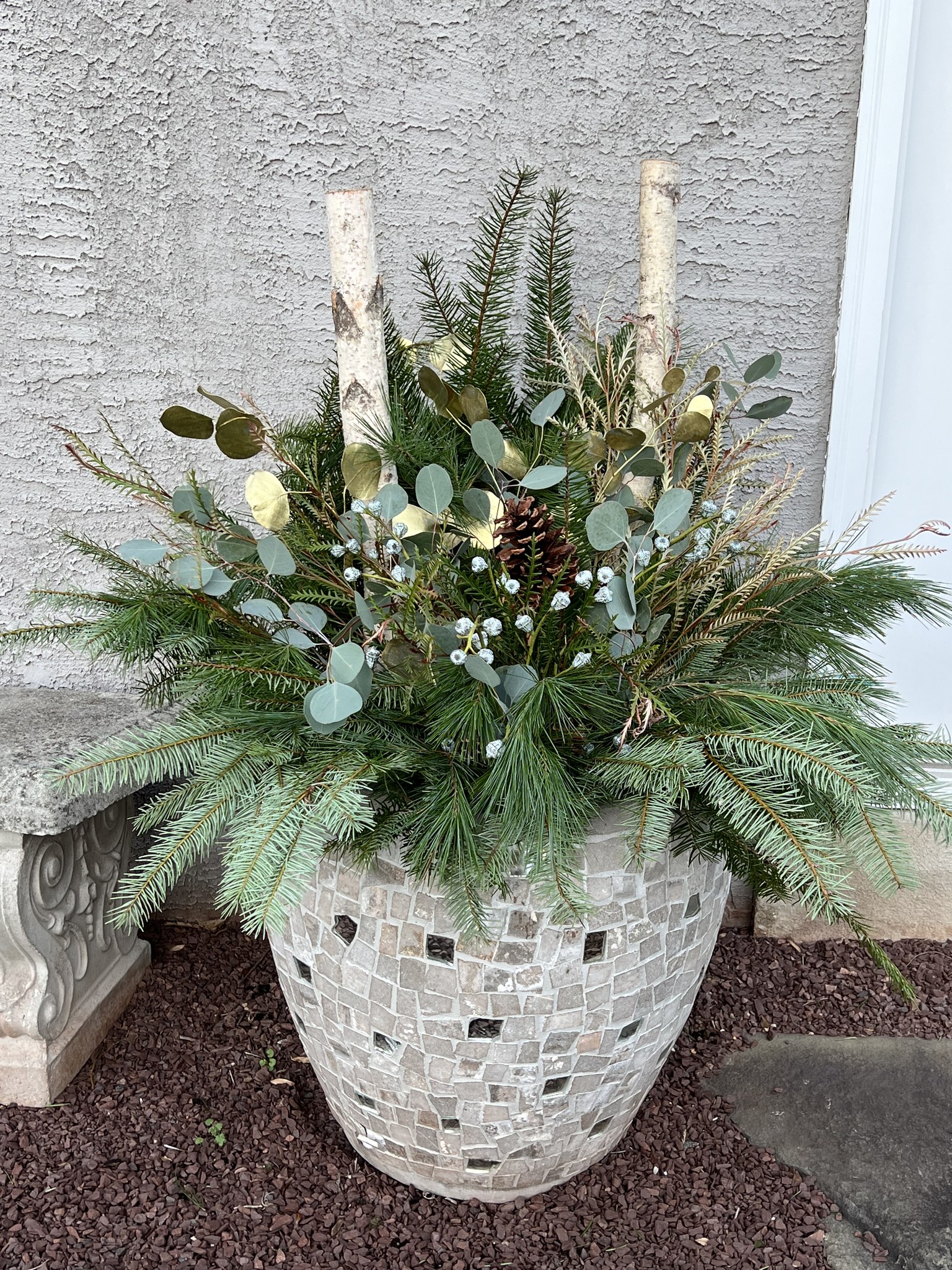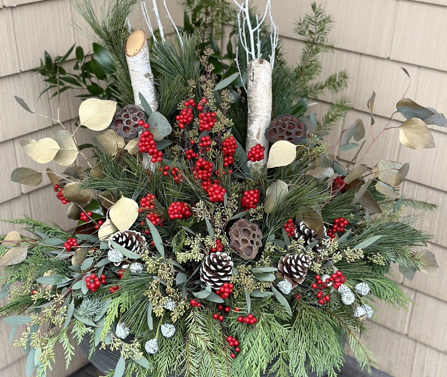 When the temperatures drop, your outdoor spaces can still look lively and inviting. Our Holiday and Winter Planters are crafted with fresh evergreens, festive accents, and long-lasting seasonal textures that brighten any entryway, porch, or patio. Each planter is designed by hand with premium materials, giving your home a warm and cheerful look all winter long.